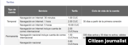 La cuenta temporal se ofrece a través de tarjetas prepagadas no recargables, válida por un término de 30 días naturales a partir de la primera conexión, y se comercializa en las unidades comerciales de ETECSA, y en las salas de navegación de los hoteles, aeropuertos e instalaciones turísticas.